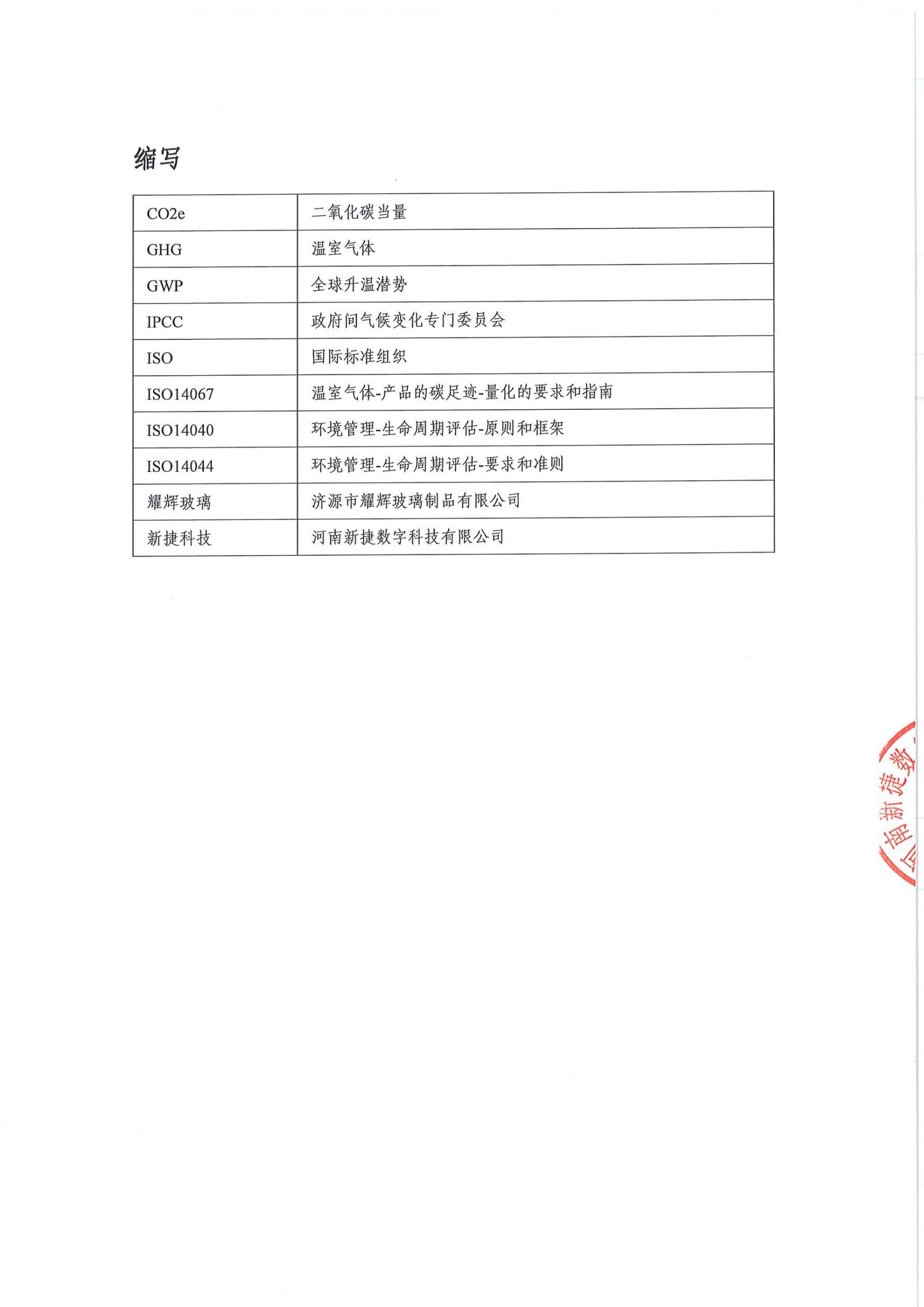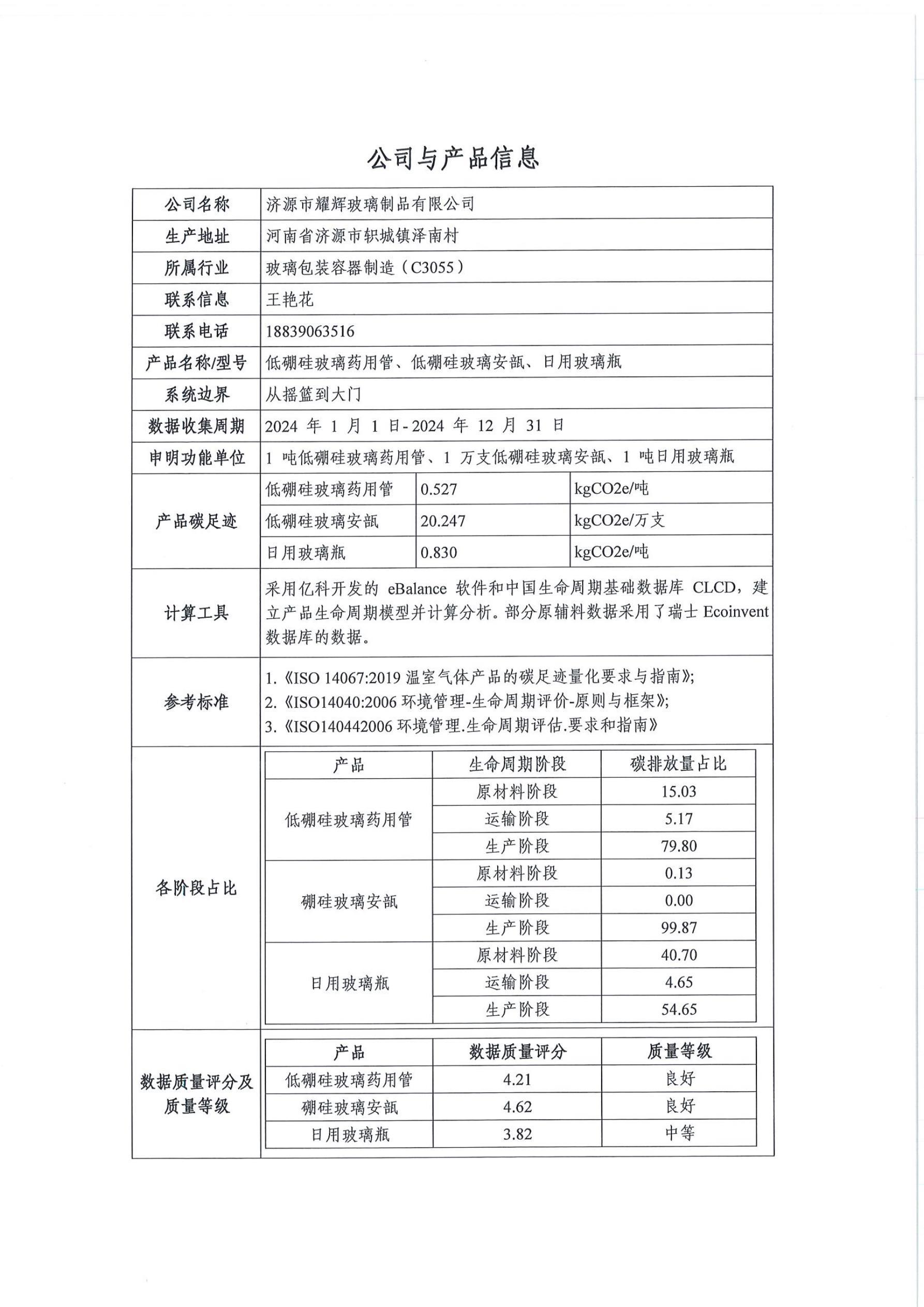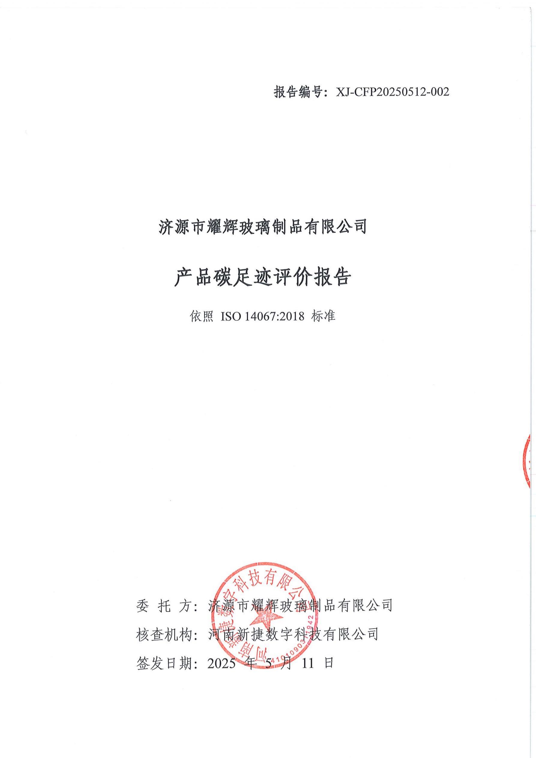 濟源市耀輝玻璃制品有(yǒu)限公(gōng)司 産(chǎn)品碳足迹評價報告