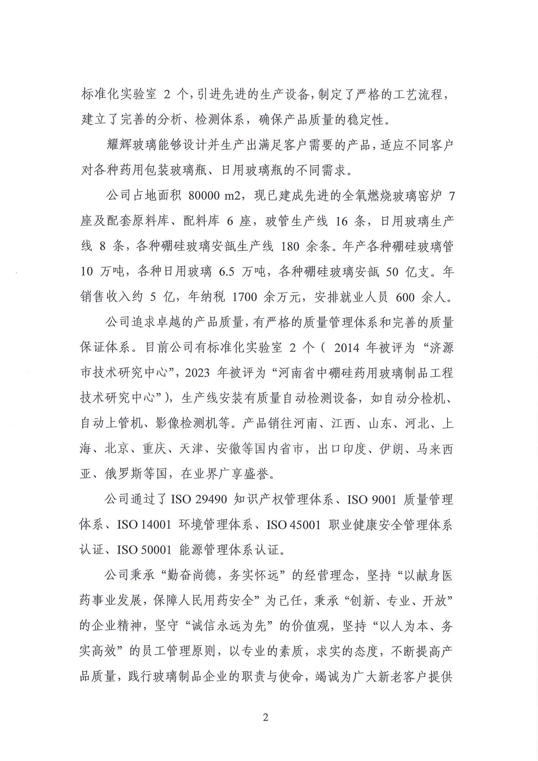濟源市耀輝玻璃制品有(yǒu)限公(gōng)司 企業社會責任報告 (2O24年度)